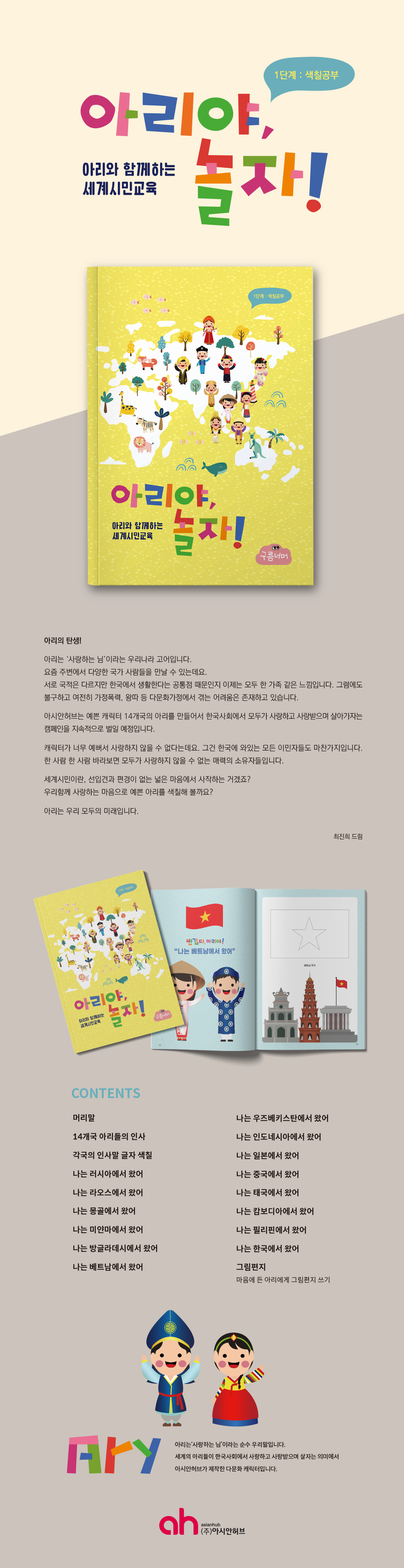 | 상품명 | [다문화그림책]아리야, 놀자! (1단계:색칠공부 / 아리와 함께하는 세계시민교육) |