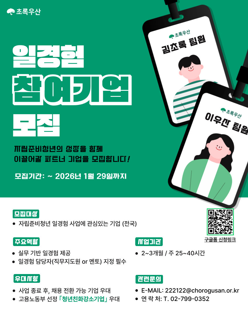 [안내]자립준비청년 일경험 프로그램 참여기업 모집