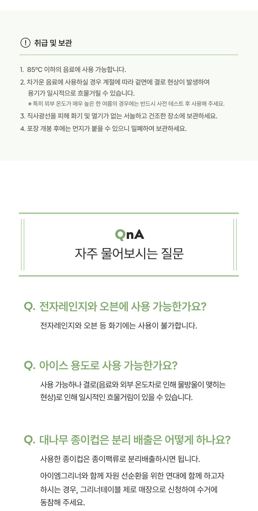 | 상품명 | 일회용 대나무 종이컵 8온스 100개/1000개 |