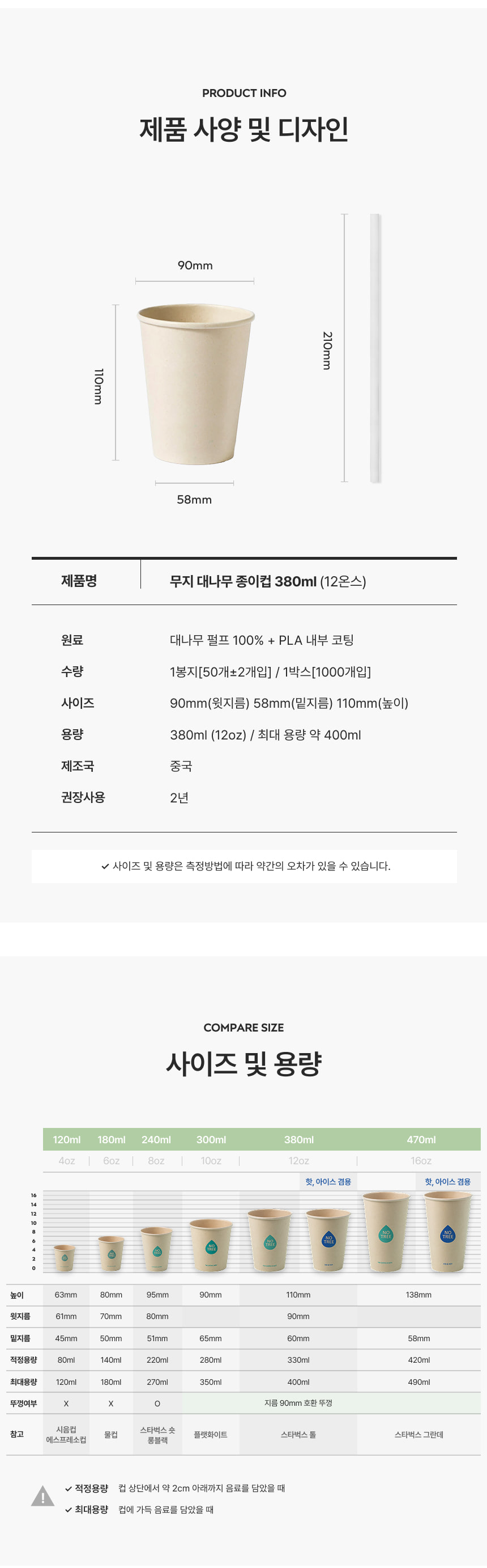 | 상품명 | 일회용 무지 대나무 종이컵 12온스 100개/1000개 |