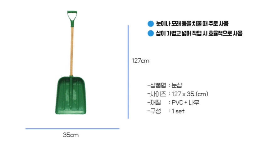 | 상품명 | 눈삽 (녹색) P삽 피삽 제설삽 눈밀대 눈 청소 제설 작업 |