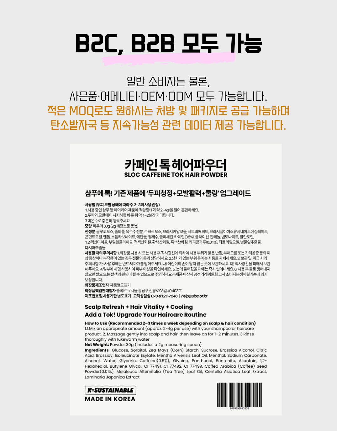 | 상품명 | 슬록 카페인 톡 헤어피우더 30g (계량스푼 동봉)(기존샴푸에 혼합하여 효능감을 Up하는 애드온 파우더) |