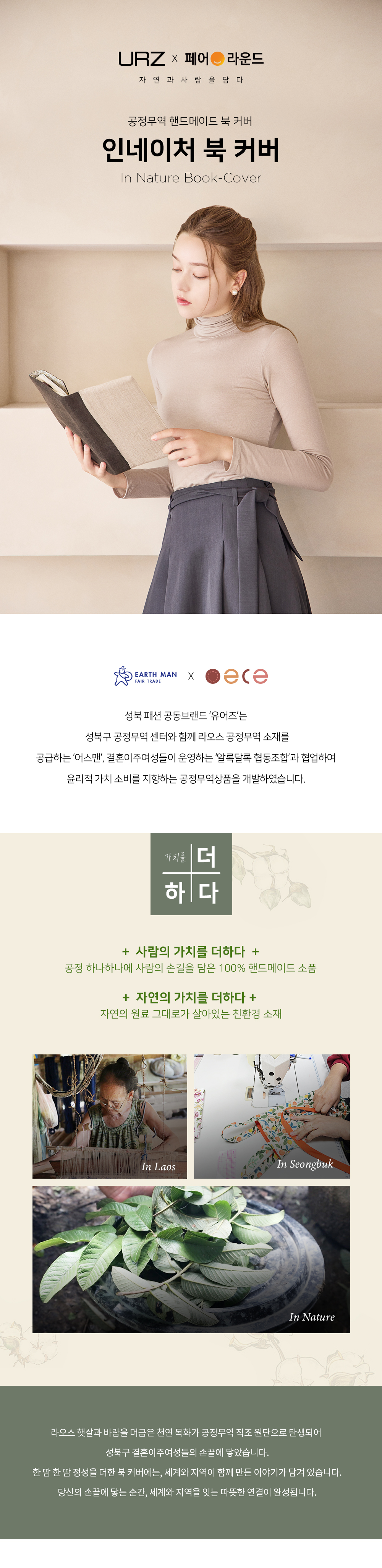 | 상품명 | 알록달록)공정무역 패브릭 북커버 베이지 브라운 천연린넨 |