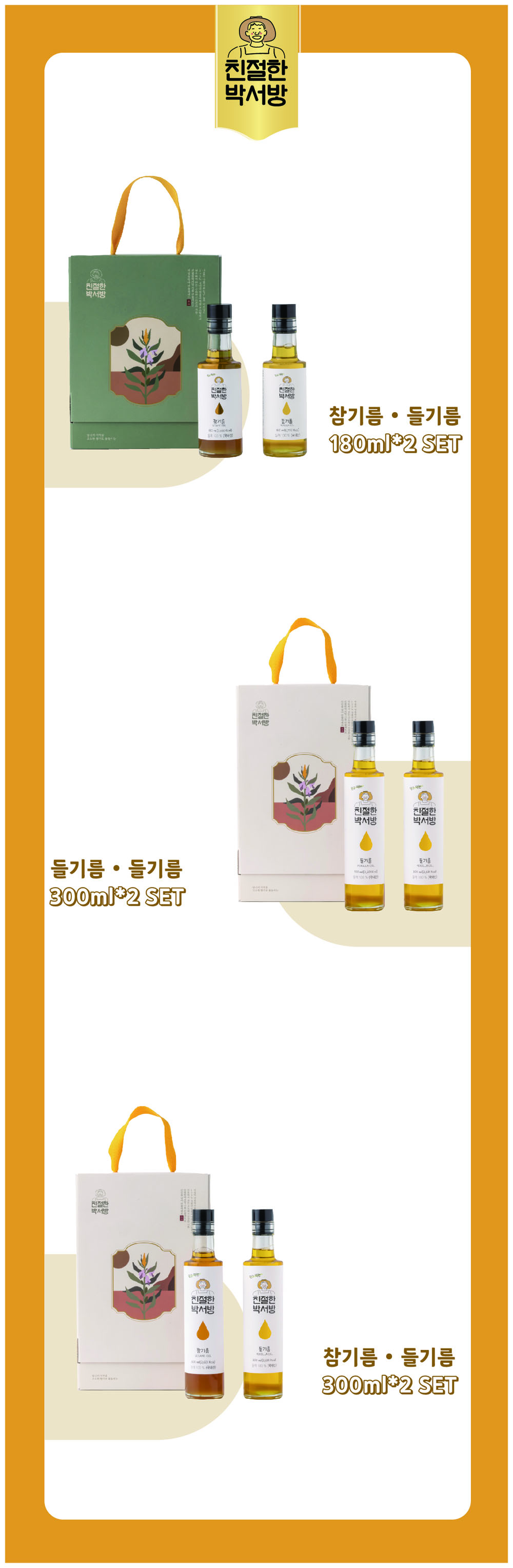 | 상품명 | [설기획전][친절한박서방] 완주에서 청년농부가 직접 짠 100% 국내산 참기름,들기름 300ml 선물세트 |
