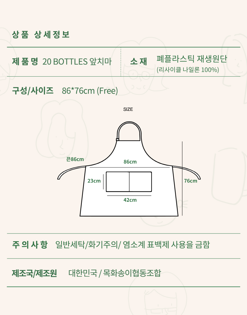| 상품명 | [설기획전]폐페트병 재생원단으로 만든 20 BOTTLES 앞치마 |