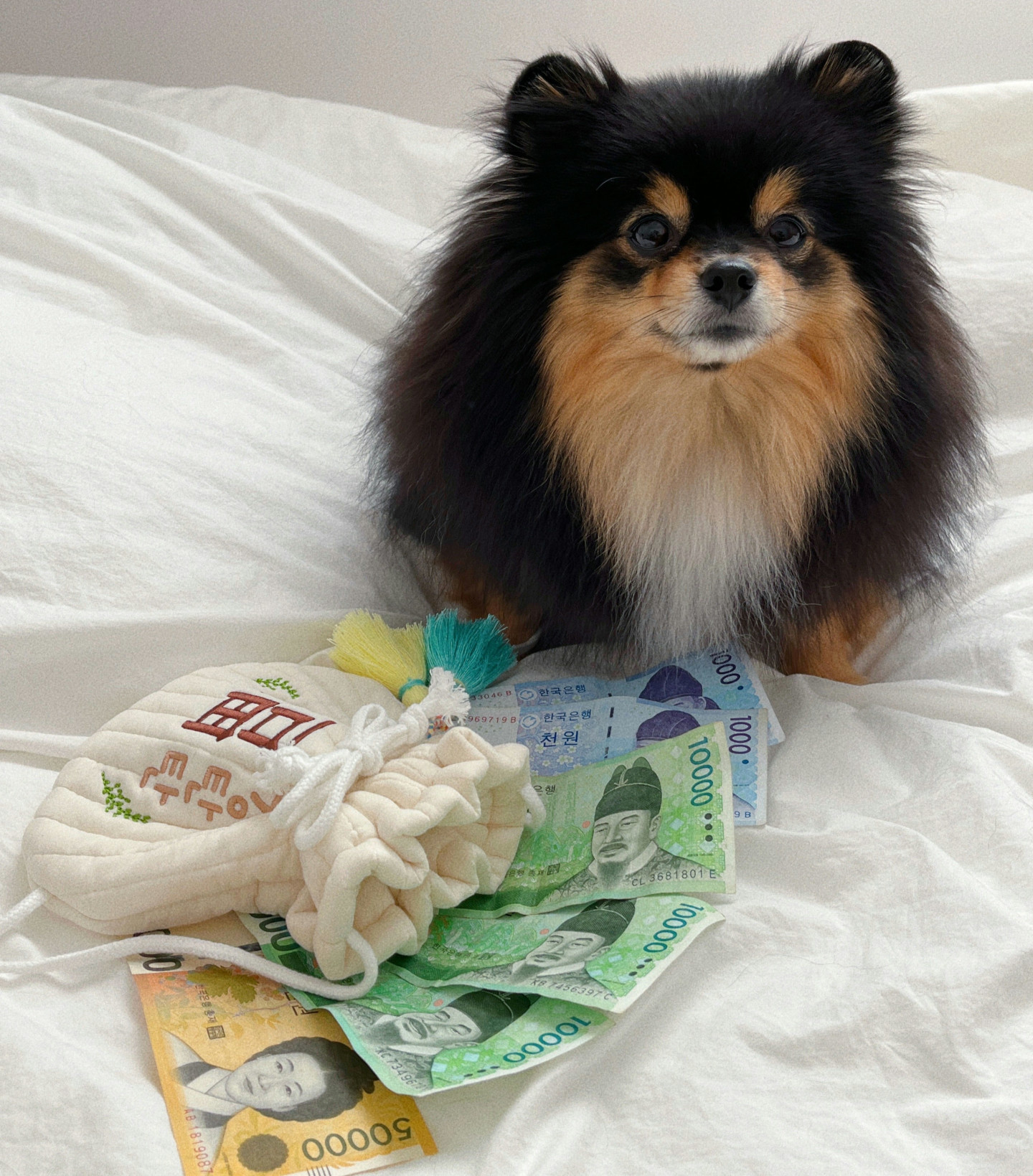 | 상품명 | [설기획전]강아지 이모티콘 자수 용돈 복주머니 |