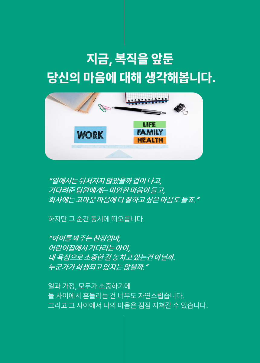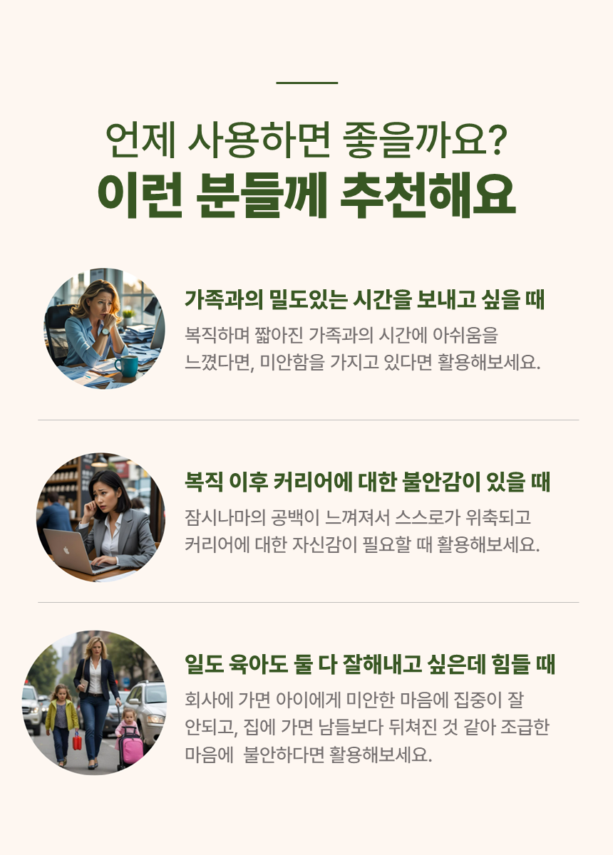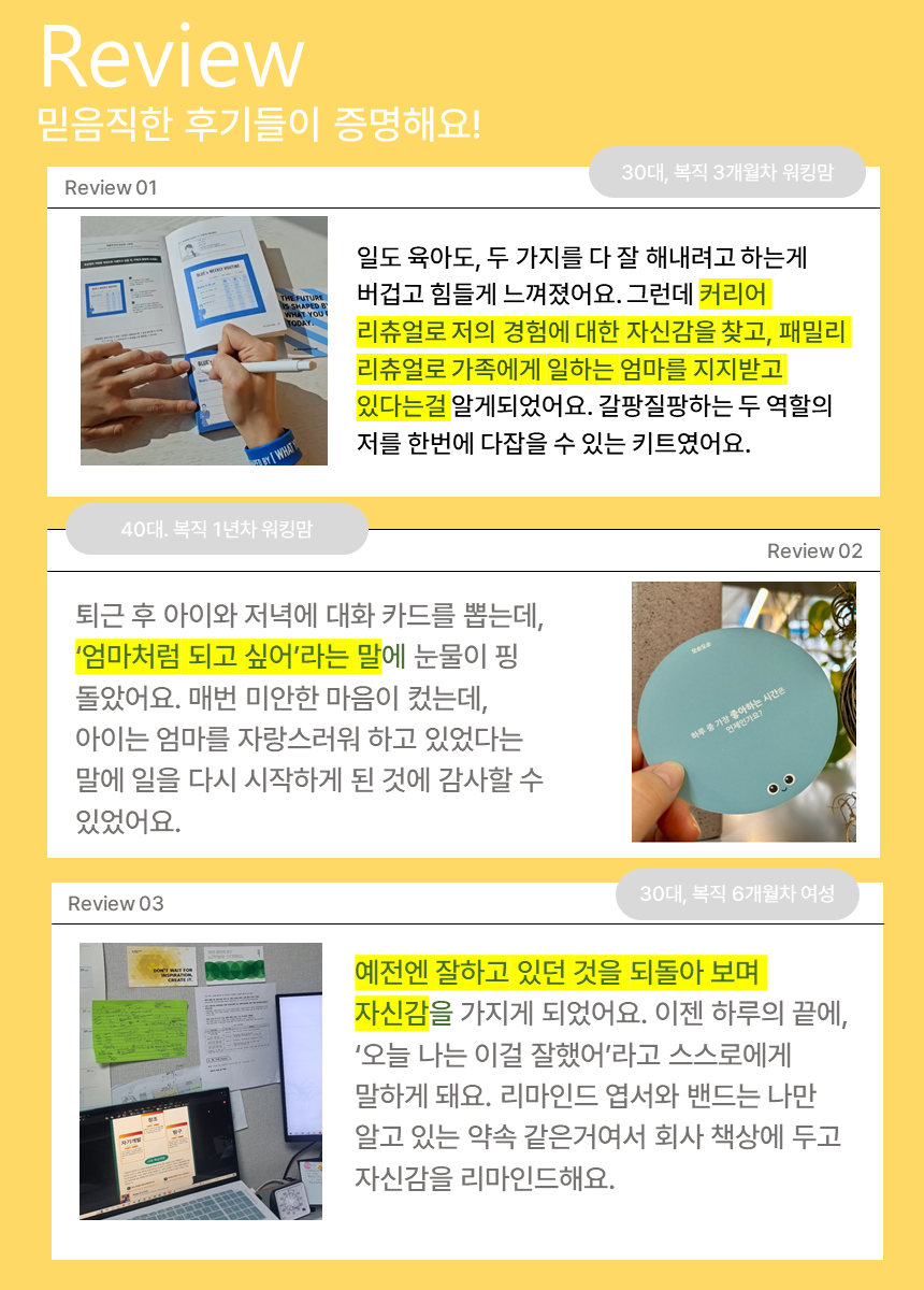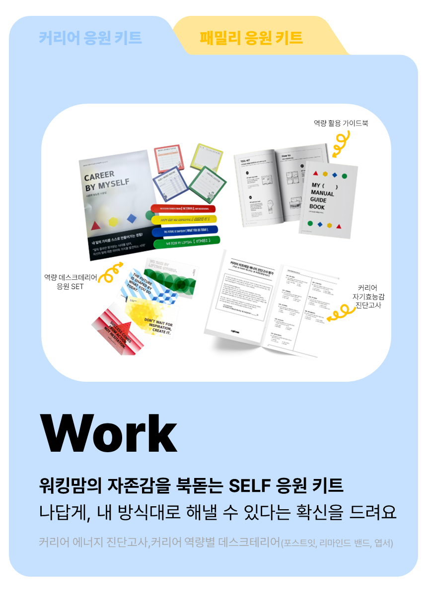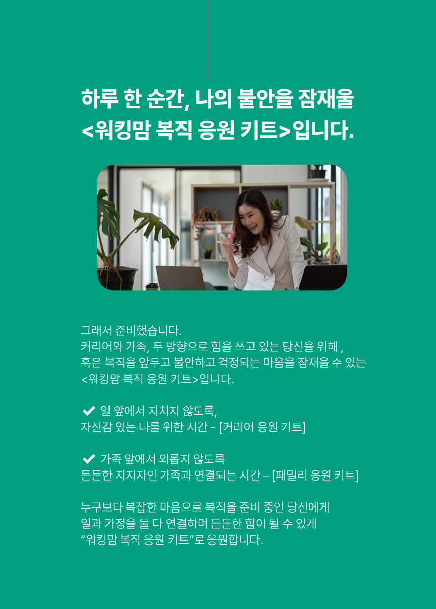 | 상품명 | [설기획전][워킹맘] 복직응원 워라밸키트 일가정양립 복직불안타파 (커리어키트/ 패밀리키트) |
