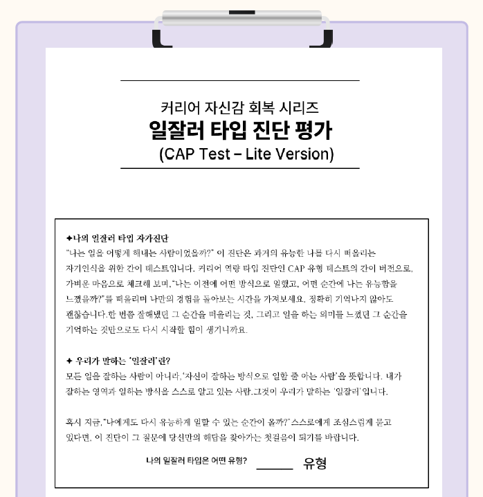 | 상품명 | [설기획전][일가정양립] 워라밸을 위한 가족 소통 능력 진단지/ 커리어 진단지 |