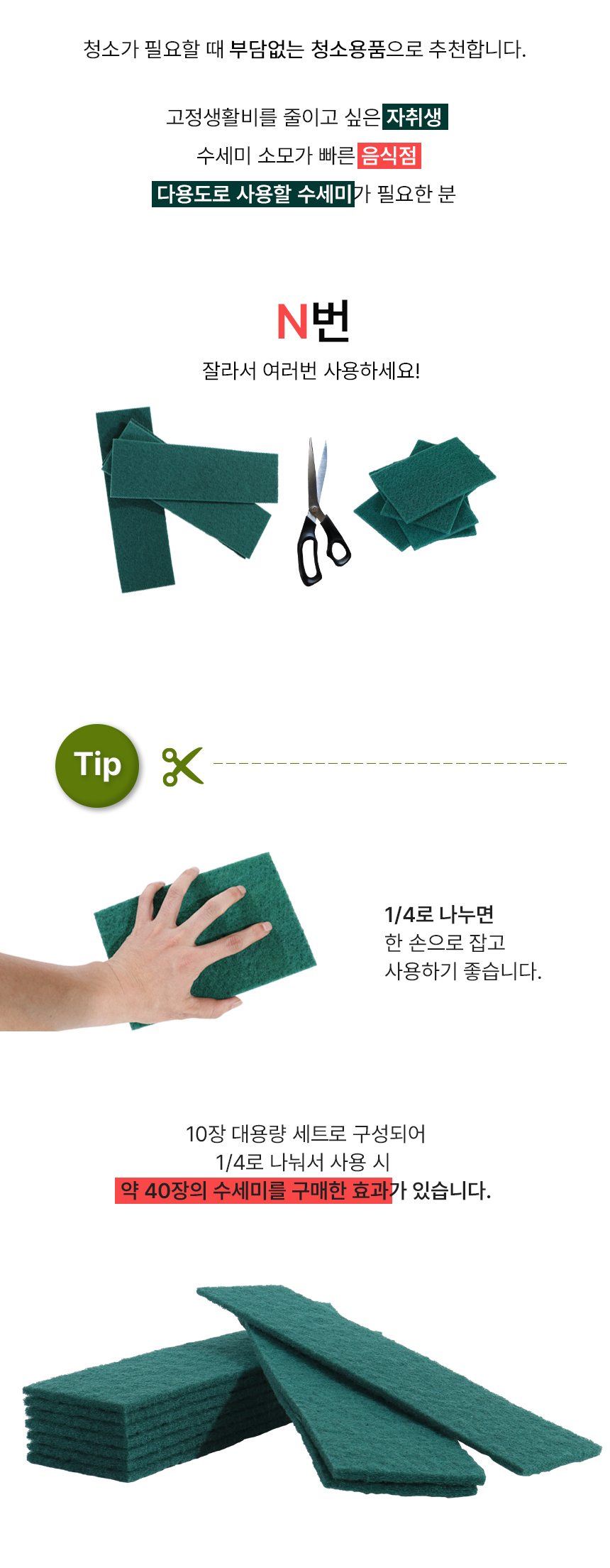 | 상품명 | 미소진 장죽수세미 10장 잘라쓰는 연마 재질 |