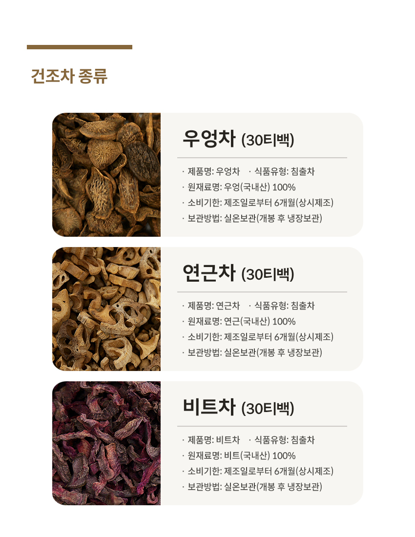| 상품명 | 담아요 국내산 수제 건조차 우엉차/연근차/비트차 티백 |