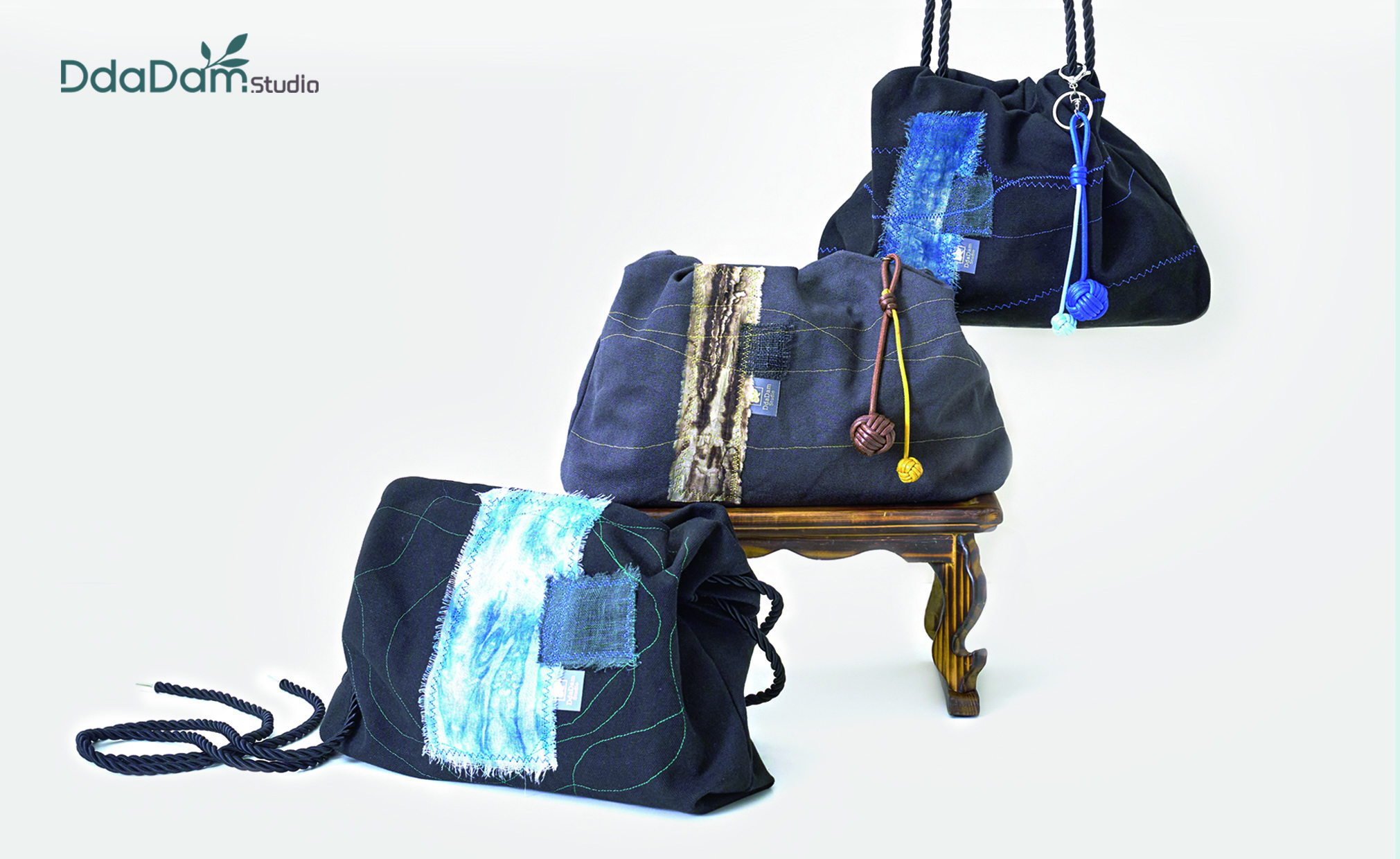 대표 제품인 쪽빛 복주머니 가방은 천연염색 과정에서 남은 작은 원단 조각들을 모아
